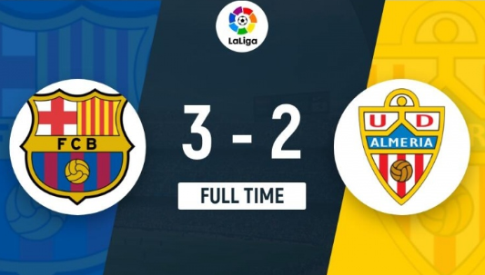 西甲第18轮,巴萨主场对阵阿尔梅里亚。上半场,阿劳霍头球攻门被扑,拉菲亚补射破门。随后阿劳霍失误,巴普蒂斯塔为阿尔梅里亚扳平比分;下半场,拉菲尼亚角球助攻罗贝托头球破门。佩尼亚被阿劳霍撞翻造成脱手,埃德加打进空门。莱万助攻罗贝托再次超出,佩尼亚终场前贡献关键扑救。最终,巴萨3-2战胜垫底的阿尔梅里亚,终结联赛2轮不胜&各项赛事3场不胜,先赛一场落后暂时榜首的赫罗纳6分。